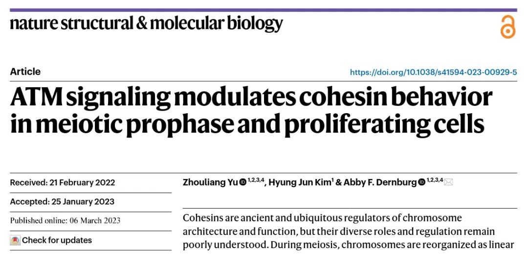 2023年3月6日,美国加州大学伯克利分校/霍华德休斯医学研究院Abby F. Dernburg研究组的于宙亮博士