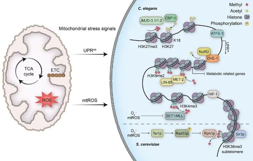 3、线粒体到细胞核的应激信号调控寿命的表观遗传机制