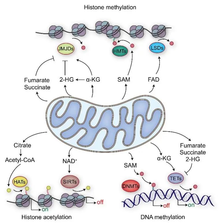 图3 线粒体到细胞核的应激信号调控表观遗传修饰