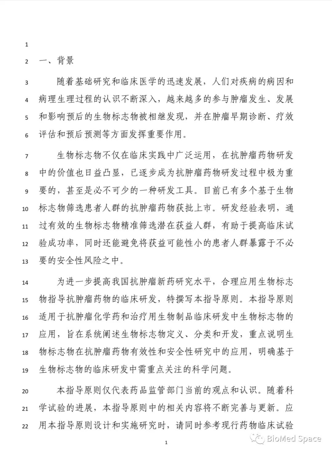 关于公开征求《生物标志物在抗肿瘤药物临床研发中应用的技术指导原则(征求意见稿)》意见的通知