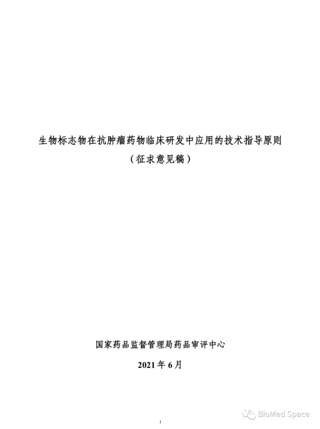CDE:关于公开征求《生物标志物在抗肿瘤药物临床研发中应用的技术指导原则(征求意见稿)》意见的通知