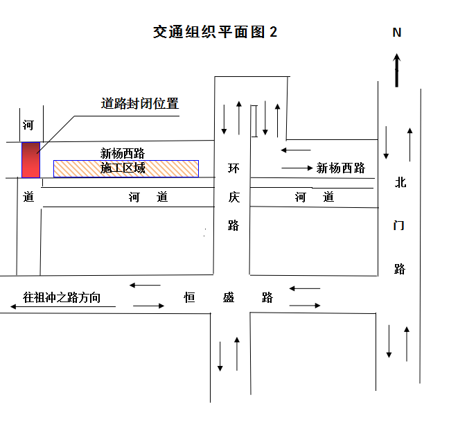 施工期间过境机动车及公交车绕道行驶,进、出唐龙村的车辆及人员由环庆路桥方向正常通行,非机动车可借助南侧人行道进行通行,通行时请注意安全。
