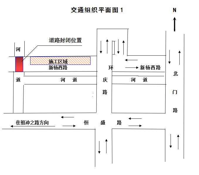 施工期间新杨西路茆沙塘大桥封闭禁止通行,过境机动车及公交车绕道行驶;进出唐龙村的机动车正常通行。