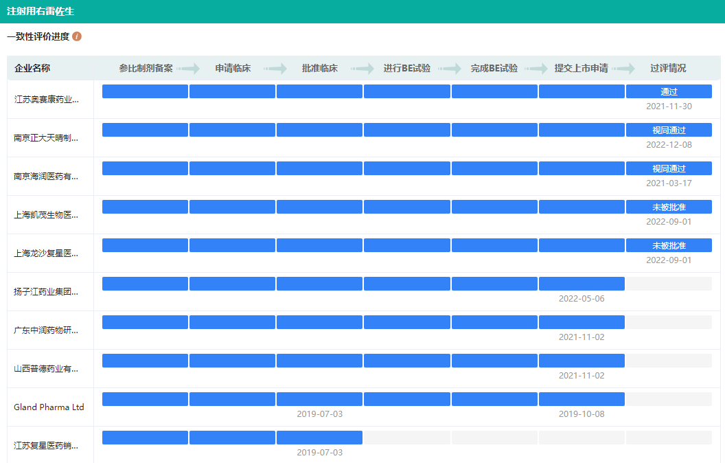 近日,南京正大天晴的注射用右雷佐生获批上市,视同通过一致性评价,成为第3家过评该品种的企业。