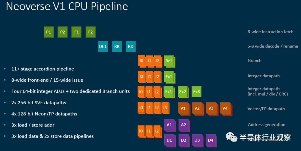 在深入了解具体细节之前,Arm整理了一些不错的图表,这些图表显示了Neoverse平台中不同核心之间的区别。这个很有趣: