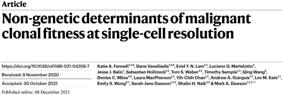 所有癌症的出现,都势必经过了一段克隆选择期和随后的克隆扩增期。肿瘤由细胞亚群(亚克隆)组成,可根据影响其表型的各种特征进行区分,包括遗传改变(如突变、基因扩增、基因缺失或染色体易位)。在大多数癌症中,肿瘤内的遗传异质性已被证实,并可作为克隆进化的基础。癌症克隆进化的基本生物学机制与无性繁殖物种进化的基本生物学机制相似:复制、可遗传变异、遗传漂变、选择和环境变化。尽管肿瘤内遗传异质性所赋予的进化原则越来越清晰,但目前对于导致肿瘤内异质性和恶性克隆适应度的非遗传机制知之甚少【1,2】。发育背景下的谱系追踪研究表明,细胞固有的遗传特性可以指导细胞的命运潜能和克隆动力学【3,4】,然而,关于非遗传多样性如何在恶性环境中指导克隆行为的分析仍有待建立。