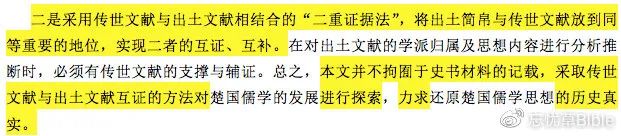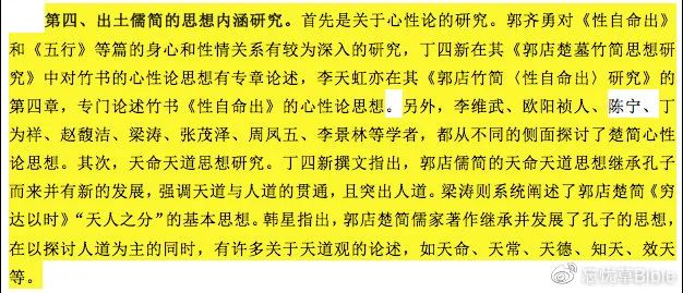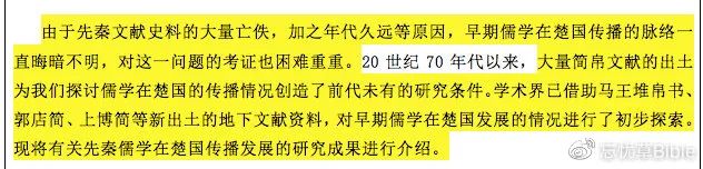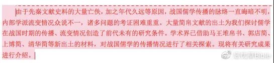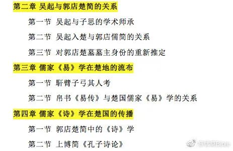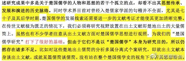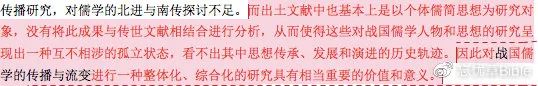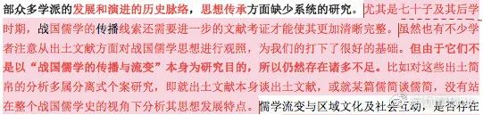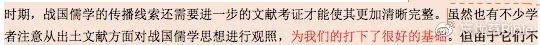 》相似度很高。首先,战国出土文献中儒学著作主要就是楚国出土儒学著作。其次,2017年书题目中的关键词“传播与流变”是2016书中所述核心论题(见下截图)之一。