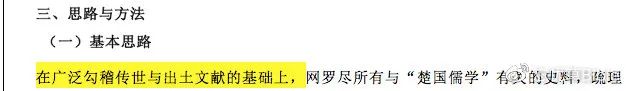 》(以下简称2017书)在项目论证过程中涉嫌严重抄袭2016年立项项目(项目号16CZX026)《出土文献视野下的楚国儒学研究》(以下简称2016书),从题目到参考文献无一例外。我们举证如下。