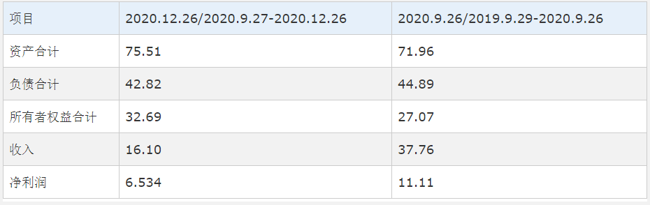 交易对方最近一年及一期主要财务指标:单位:亿美元