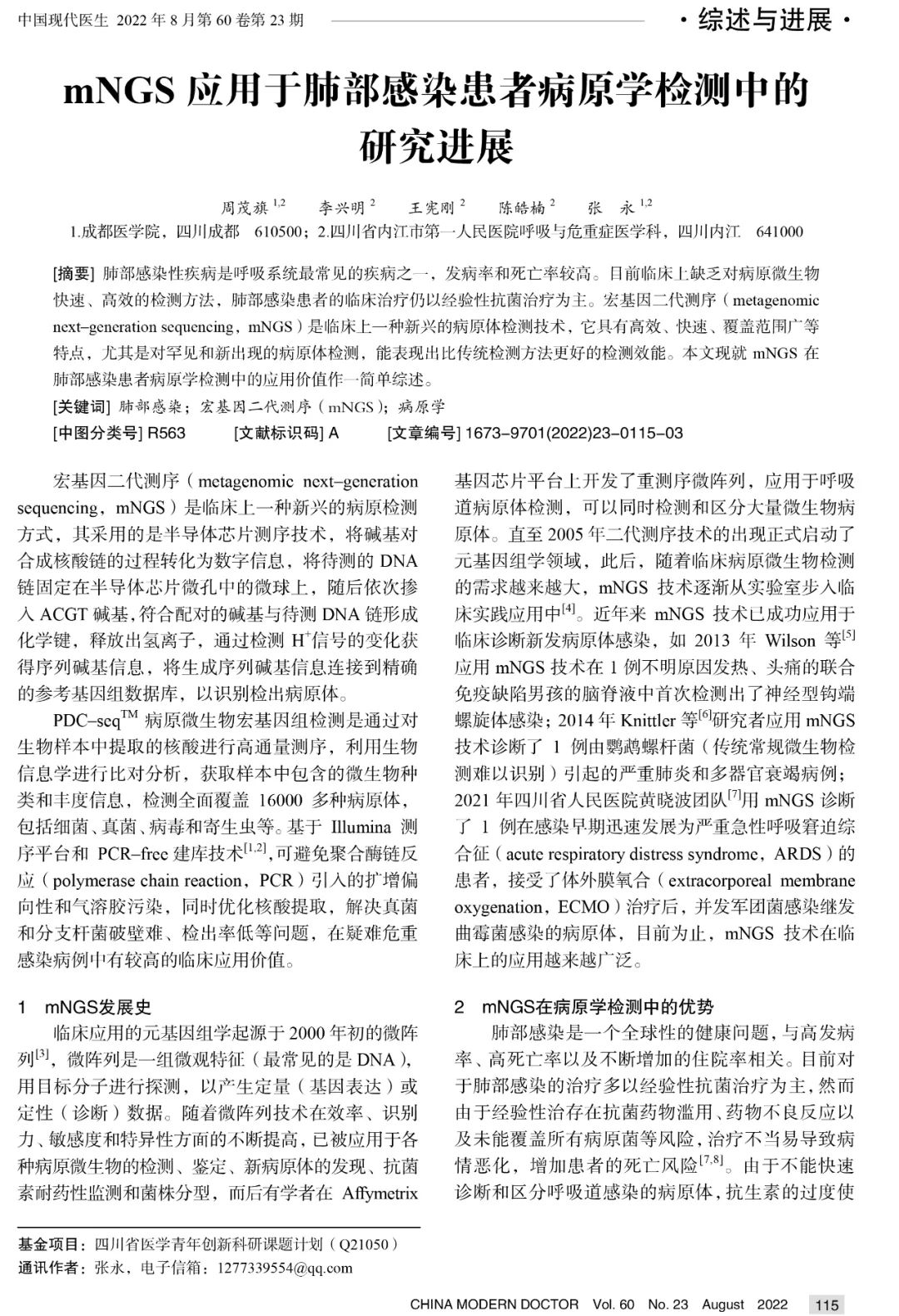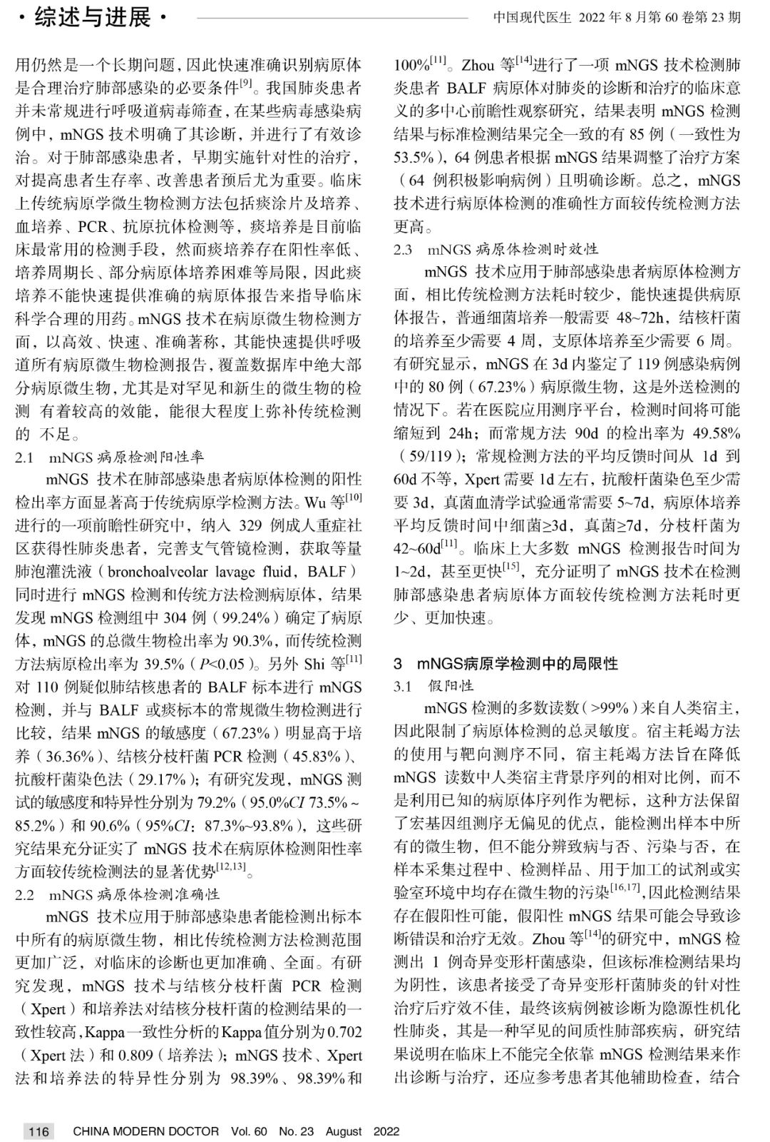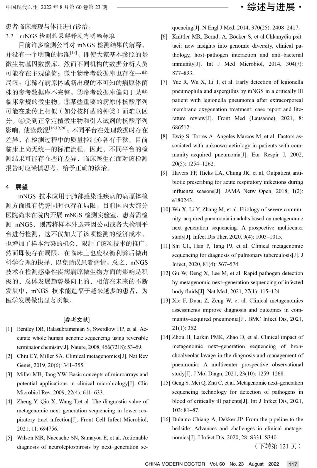 文献来源:周茂旗,李兴明,王宪刚,等. mNGS应用于肺部感染患者病原学检测中的研究进展[J]. 中国现代医生,2022,60(23):115-117,121.