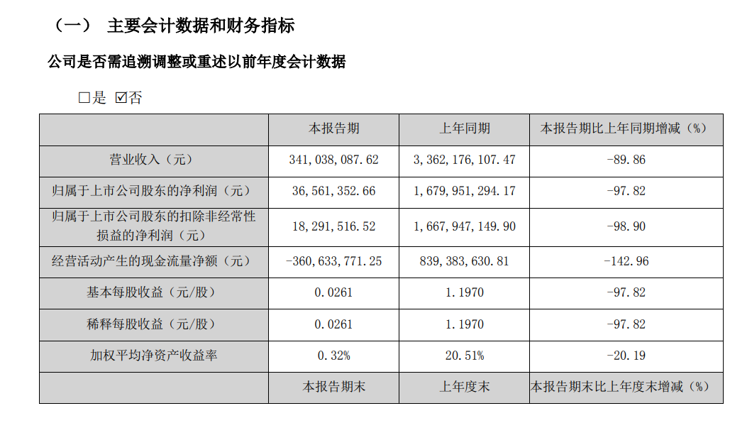 4月28日,达安基因发布2023年第一季度报告,实现营业收入3.41亿元,同比下降89.86%。归属于上市公司股东的净利润3656.13万元,同比下降97.82%。归属于上市公司股东的扣除非经常性损益的净利润1829.15万元,同比下降98.90%。