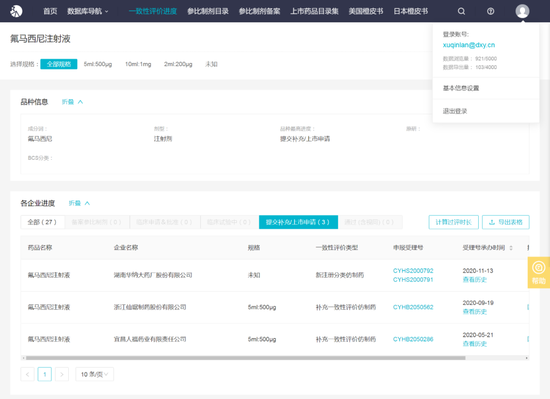 据 Insight 数据库显示,目前除了人福药业外,浙江仙琚制药的一致性评价补充申请和湖南华纳大药厂新注册分类上市申请正在审评中,本次人福药业为该品种首家通过一致性评价。