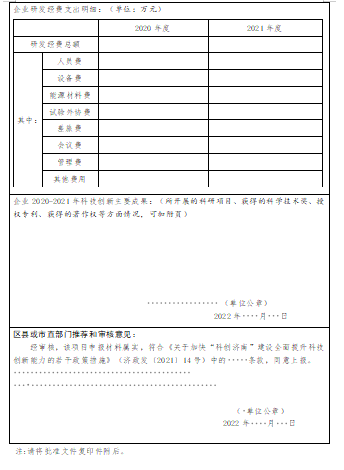 1.2022年济南市”科创济南建设若干政策专项资金“申请信息表
