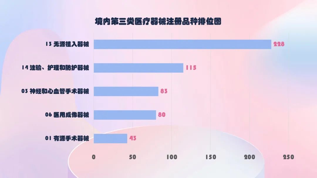 注册数量前五位的境内第三类医疗器械是: