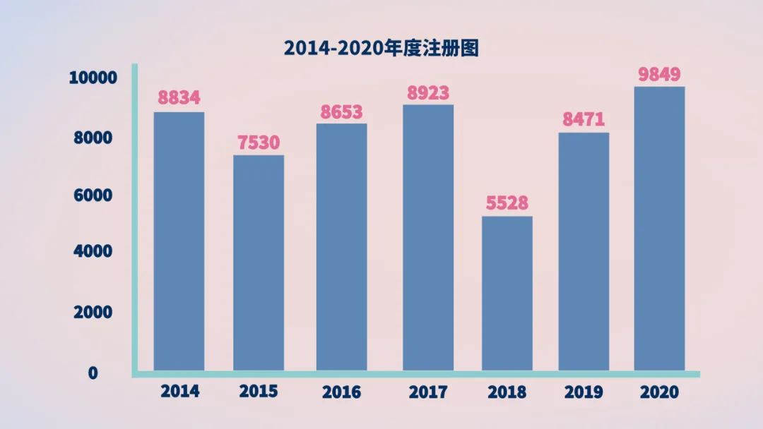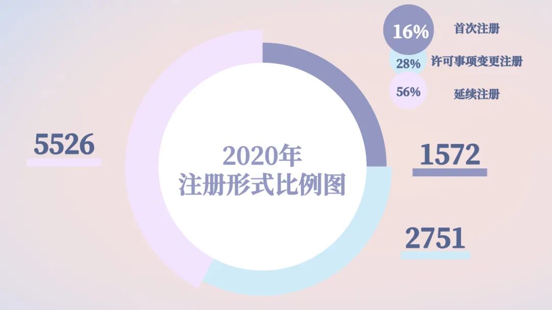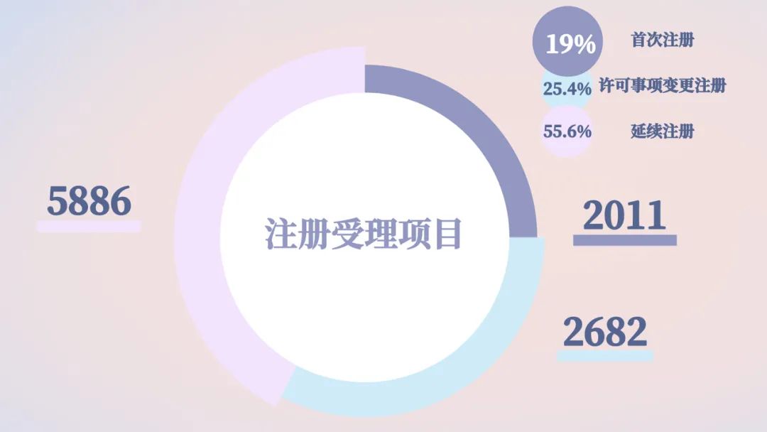 首次注册、延续注册和变更注册9849项,与2019年相比注册批准总数量增长16.3%。