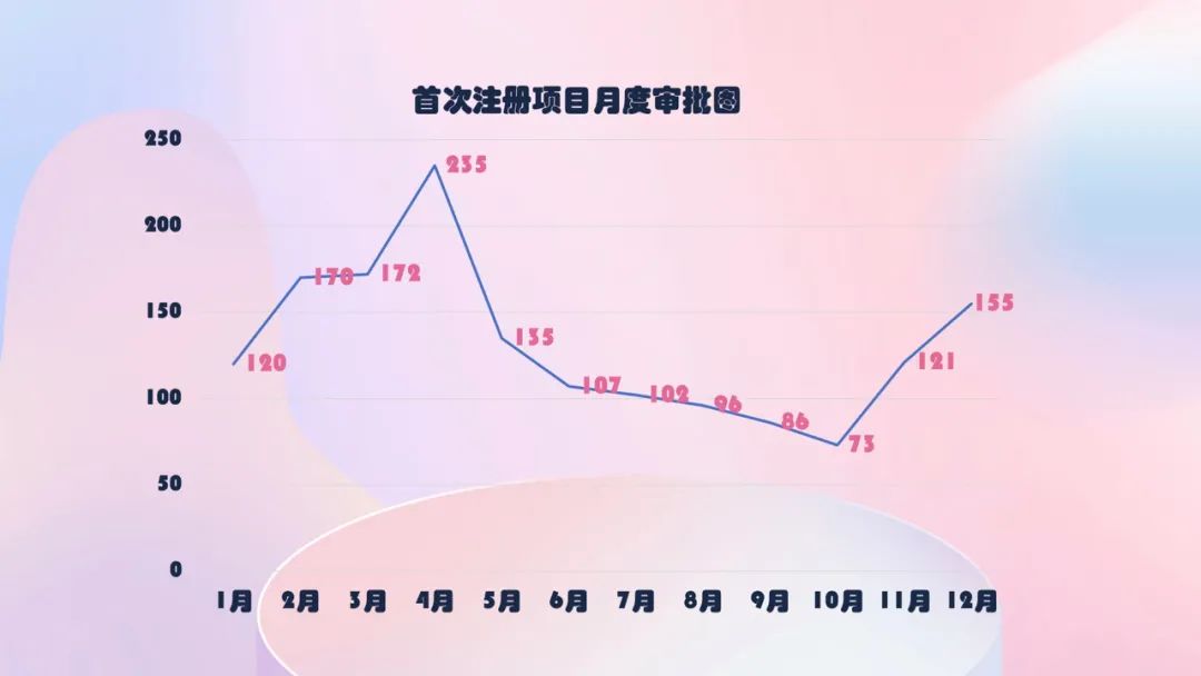 首次注册项目月度审批情况: