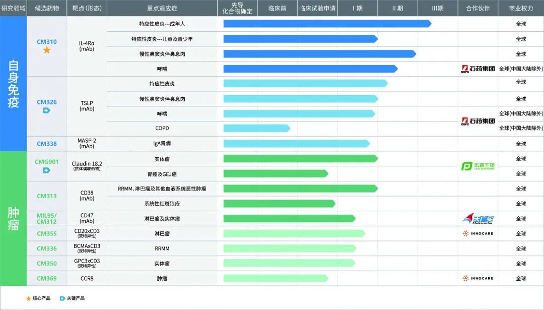 在2021年9月,康诺亚和诺诚健华还进一步加深了研发合作。最新年报信息披露了一款两家公司共同开发的在研抗趋化因子受体8(CCR8)单克隆抗体CM369,计划2022第二季度递交临床试验申请。