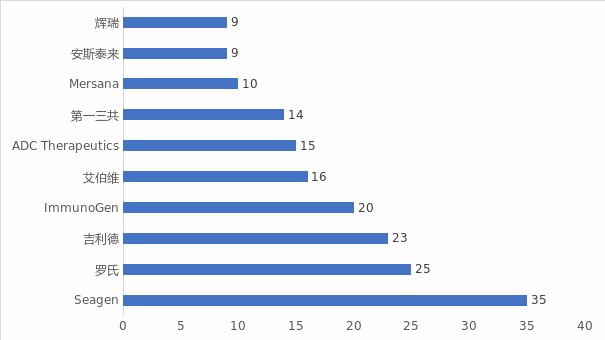 最新数据显示,从ADC布局上看,Seagen自研或与其他公司合作的ADC药物管线最广,共计35个药物。罗氏排名第二,共计25个药物。紧跟其后的,是吉利德,共计23个药物。值得一提的是,2020年9月份,吉利德以收盘价格108%的溢价、每股88美元,总值210亿美元收购了ADC公司Immunomedics,引发了业内的高度关注和瞩目,亦可见吉利德布局ADC的雄心。
