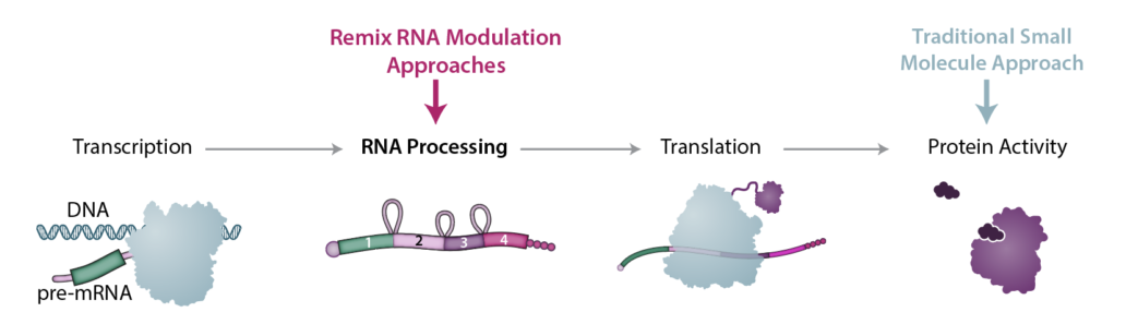传统的药物开发,大都是通过调控与疾病相关的蛋白质(或酶)的活性来实现疾病的治疗。传统的 RNA 产品(例如新冠肺炎 RNA 疫苗)是将 RNA 递送到体内不同,Remix Therapeutics