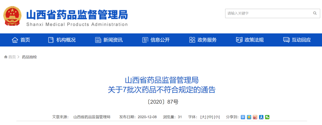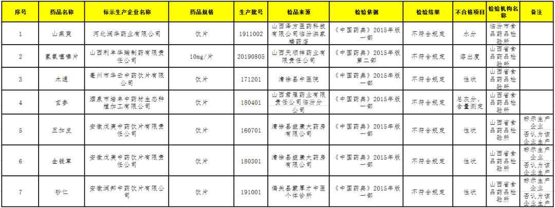 山西:7批次药品不符合规定