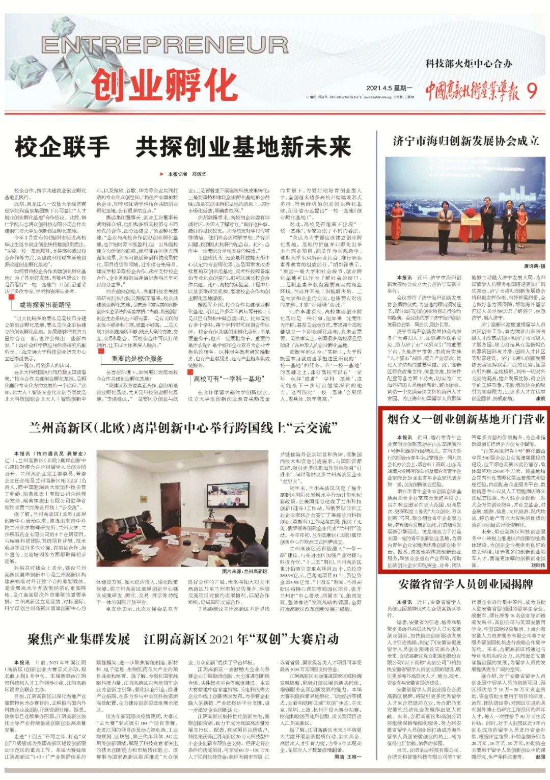 烟台市青年企业家创新创业基地由烟台企业家商会发起并设立,旨在响应国家在更大范围、更高层次、更深程度上推进“大众创业、万众创新”号召,聚合烟台青年企业家力量,培育烟台发展新动能、打造烟台发展新引擎而设。该基地致力于打造全国一流的青年创新创业基地,为烟台青年企业家提供优质创新创业平台。据悉,该基地将围绕创新创业服务,聚焦企业重点产业布局,帮助创新创业企业实现资金、业务、团队管理多方面的价值提升,为企业指数级增长提供全方位专业赋能。