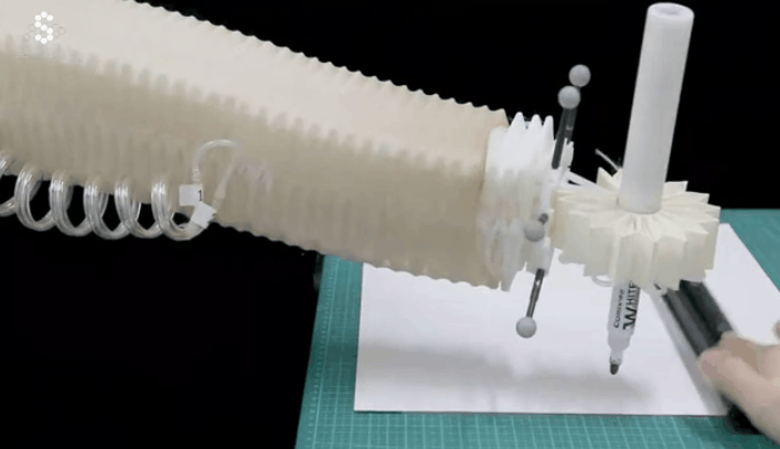 据悉,该软体机器人手臂主要由蜂巢结构、气囊网络、驱动系统三个部分组成。