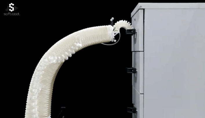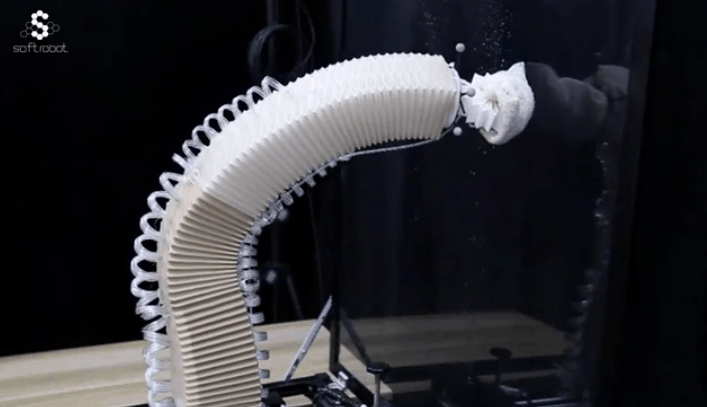而且还是七位中国 90 后研发的,该机器人的学名叫蜂巢气动网络软手臂,因为酷似大象鼻子,以下姑且称作“象鼻手臂”。
