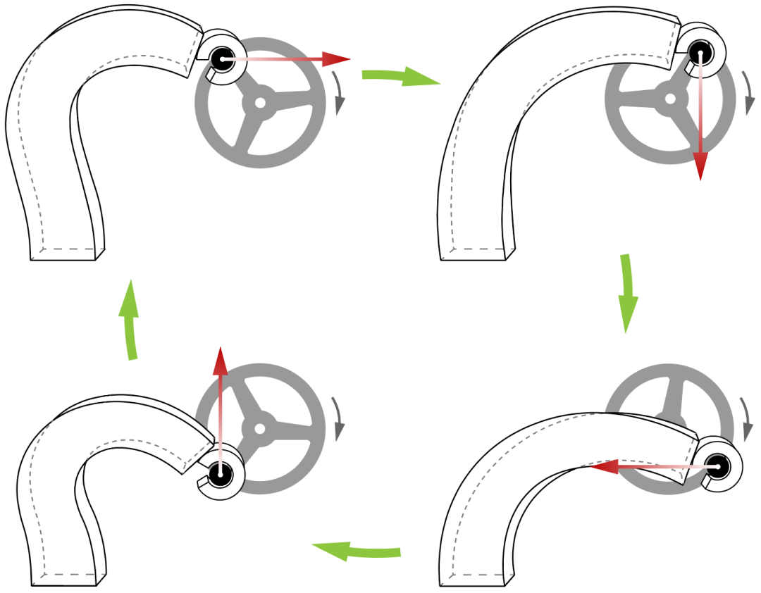 这种“行为” 中蕴含着一种运动趋势,以转手轮为例,执行 “向前、向下、向后、向上” 四个行为,手轮就能转动一圈。