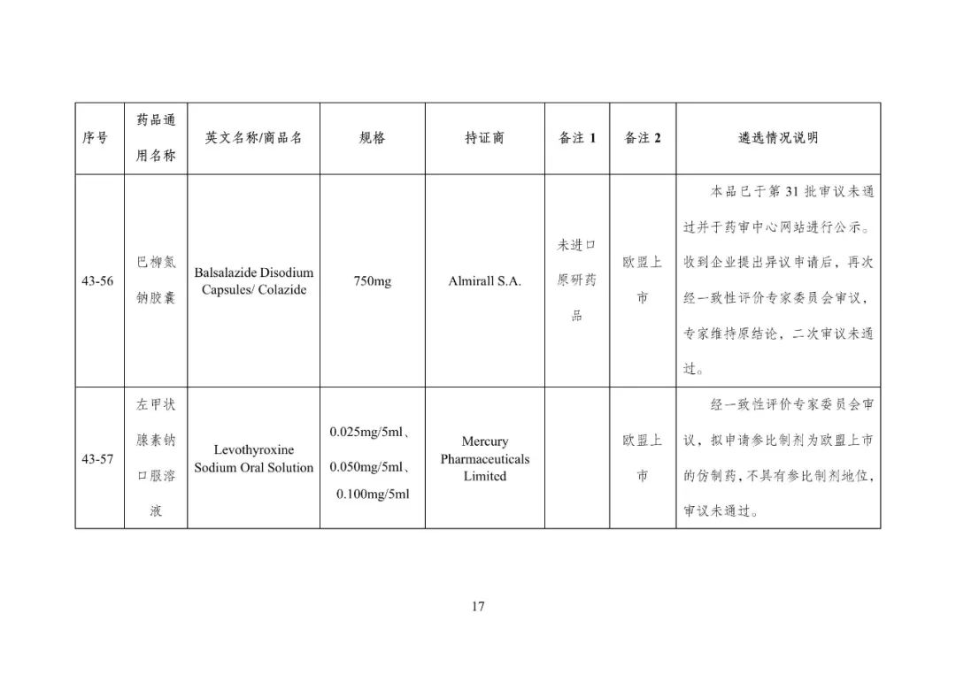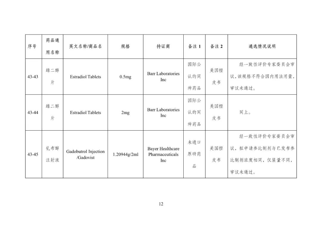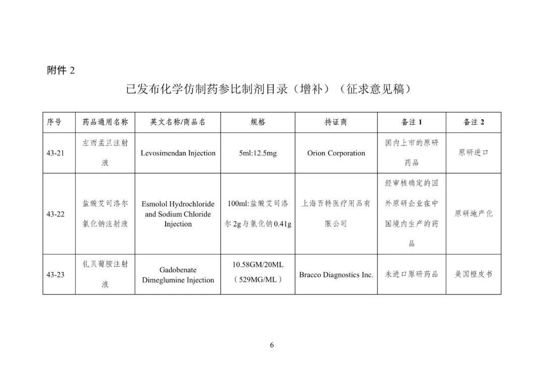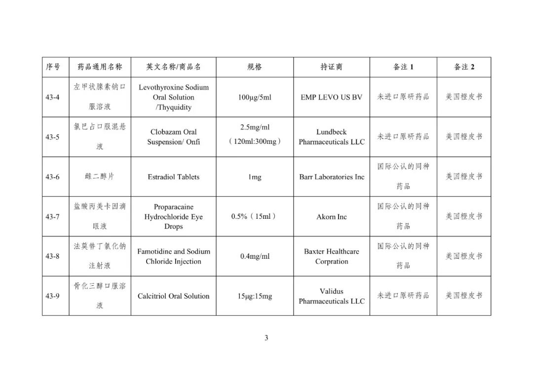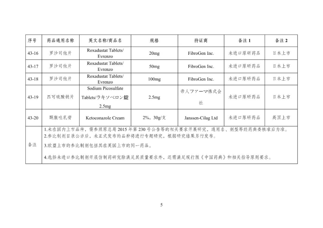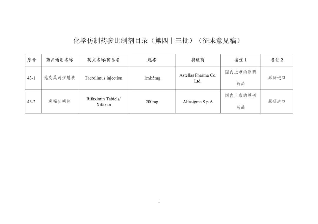 《化学仿制药参比制剂目录(第四十三批)》公示