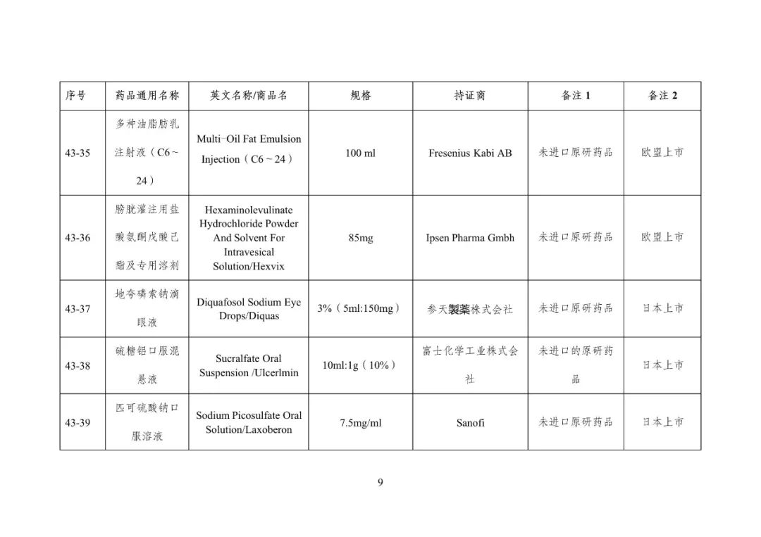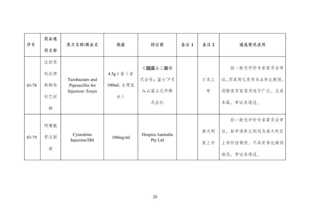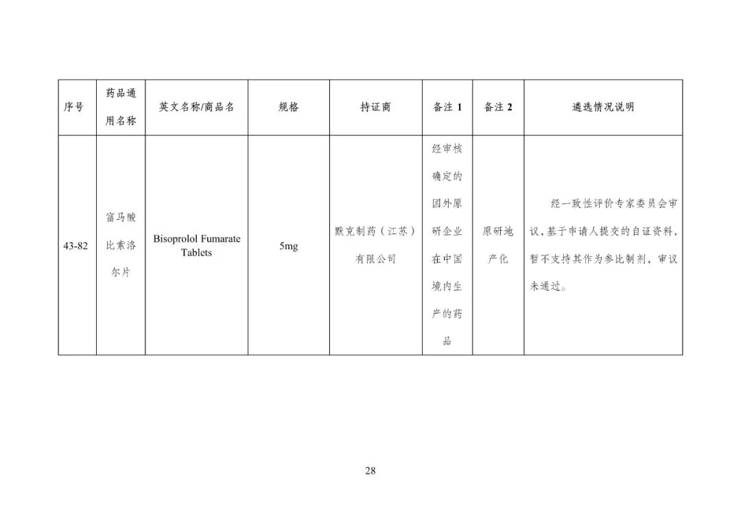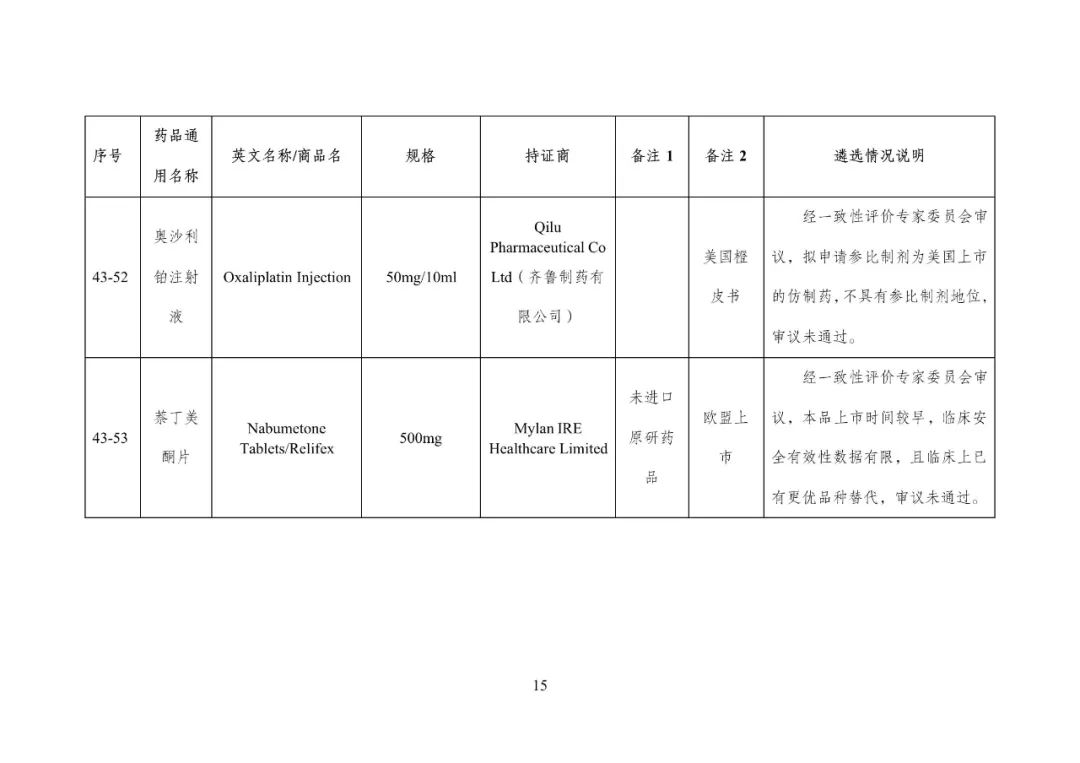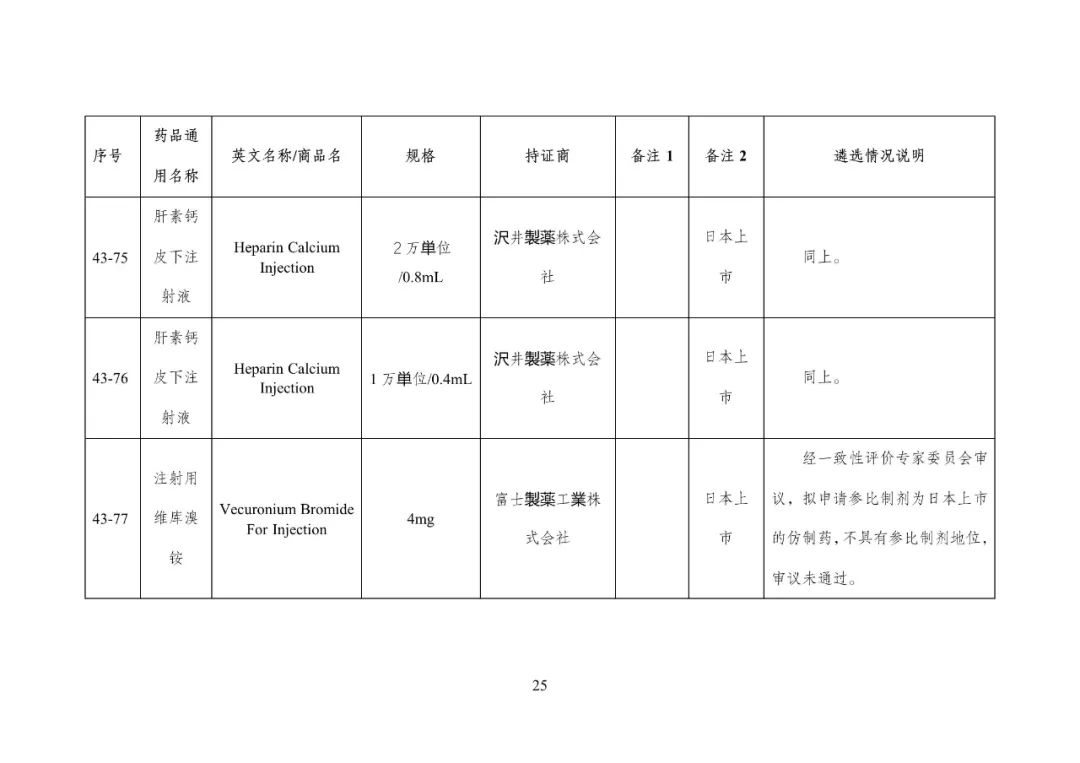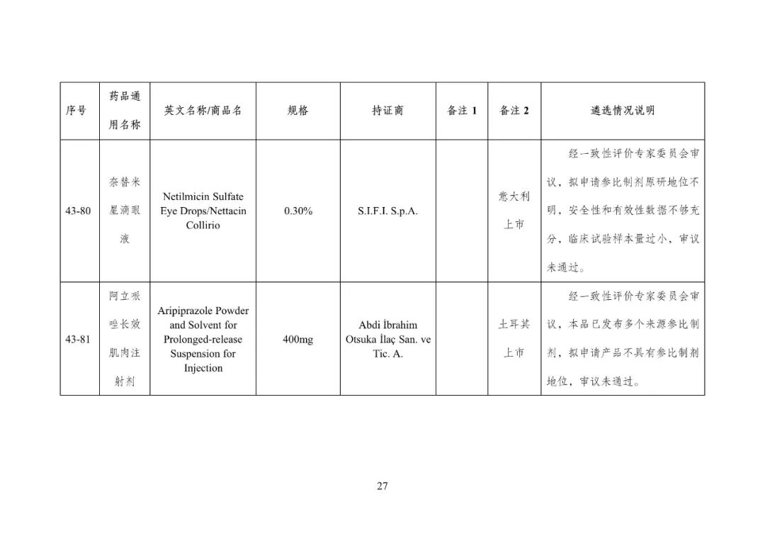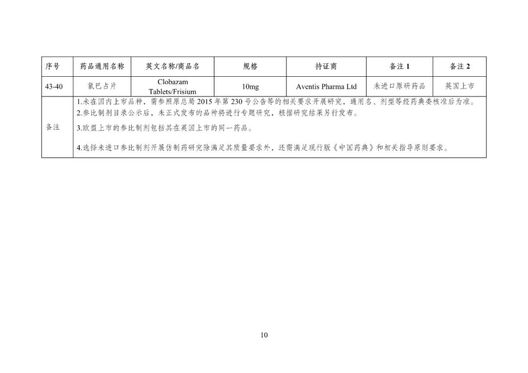 《化学仿制药参比制剂目录(第四十三批)》公示