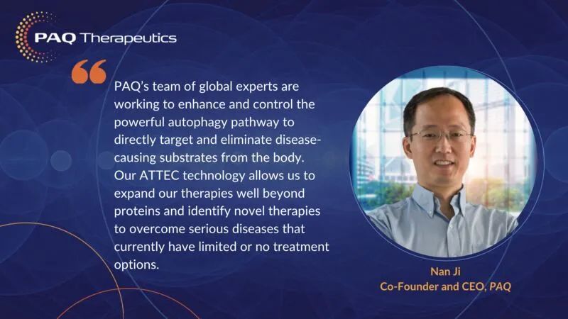 “PAQ 的全球专家团队正在努力劫持强大的自噬途径,以直接靶向并消除体内的致病底物,”PAQ 联合创始人、总裁兼首席执