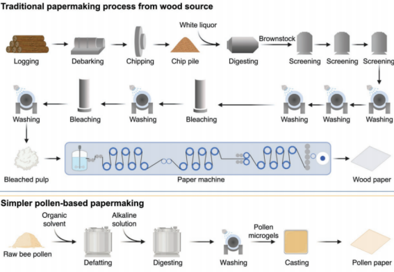 除了易回收之外,花粉纸还具有高度的通用性。与传统的木质纸不同,花粉的收集不需要砍伐树木,不会破坏生态,而且是天然可再生的,在可扩展性、经济性和环境可持续性方面,它都是一种具备极大潜力的原材料。