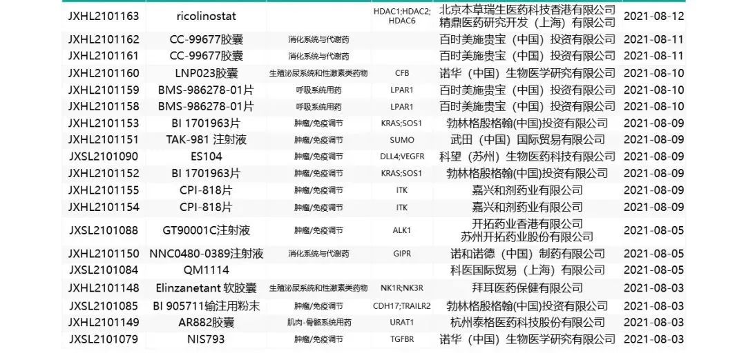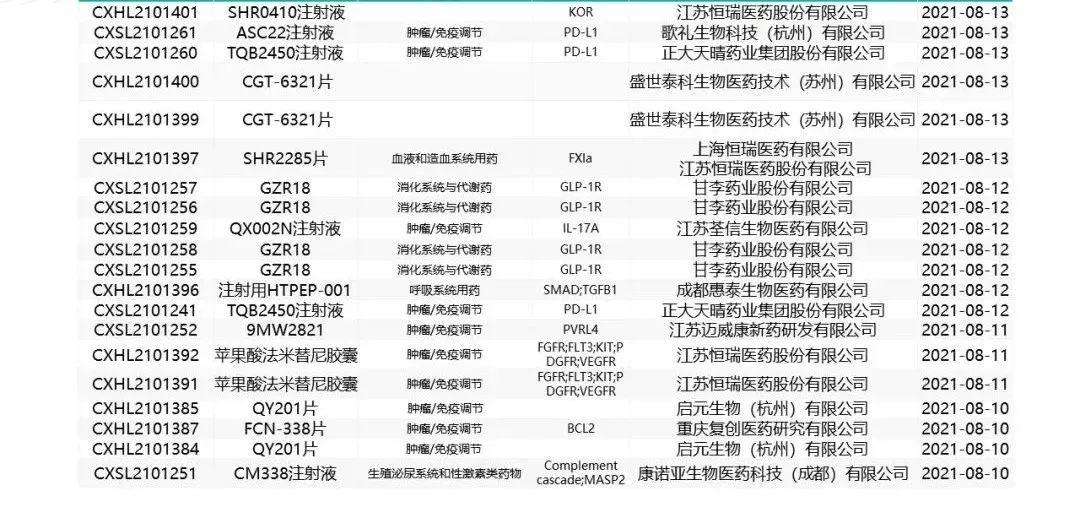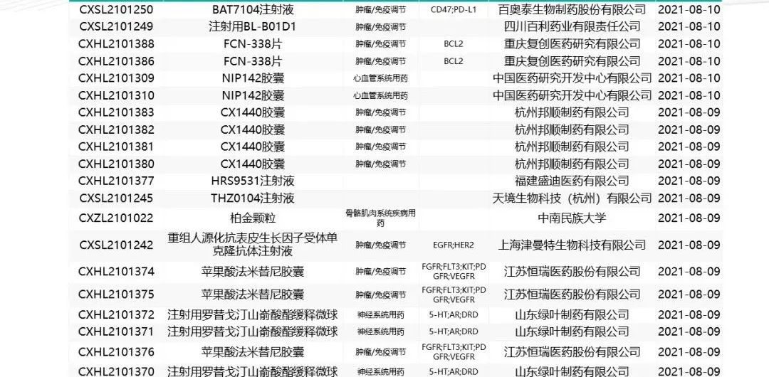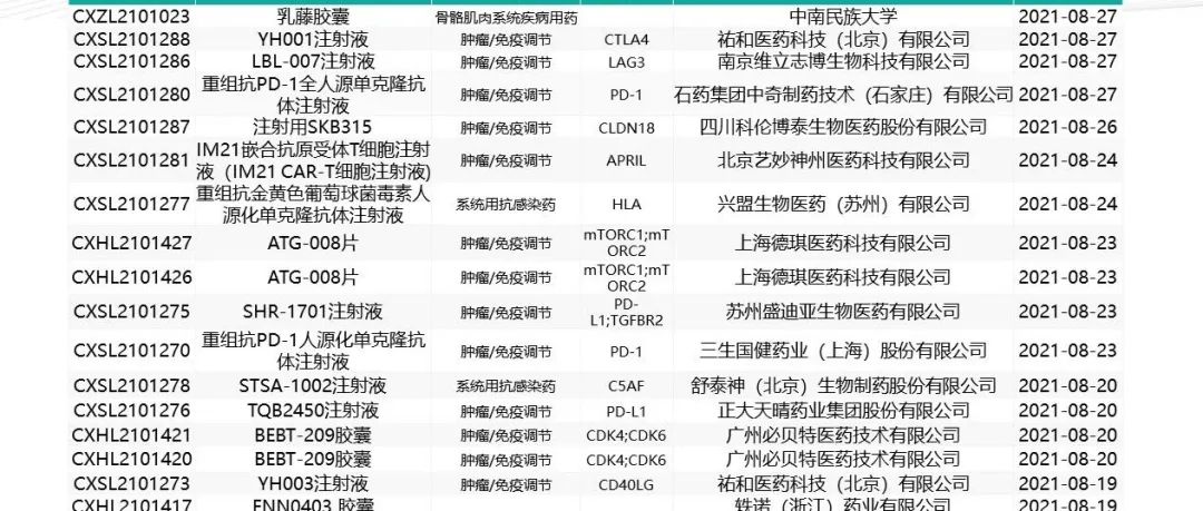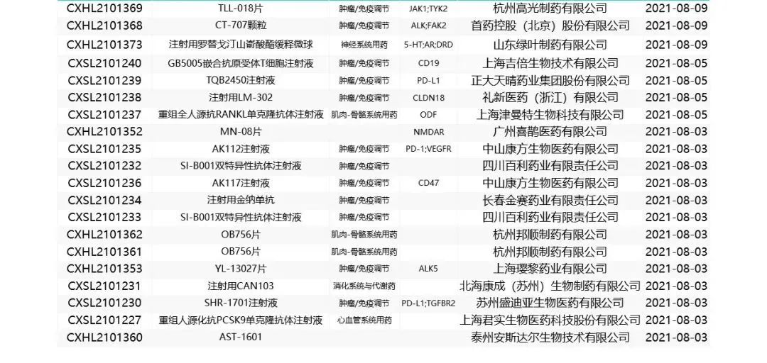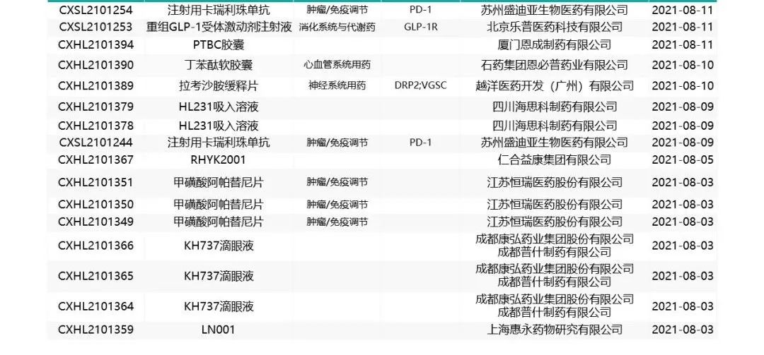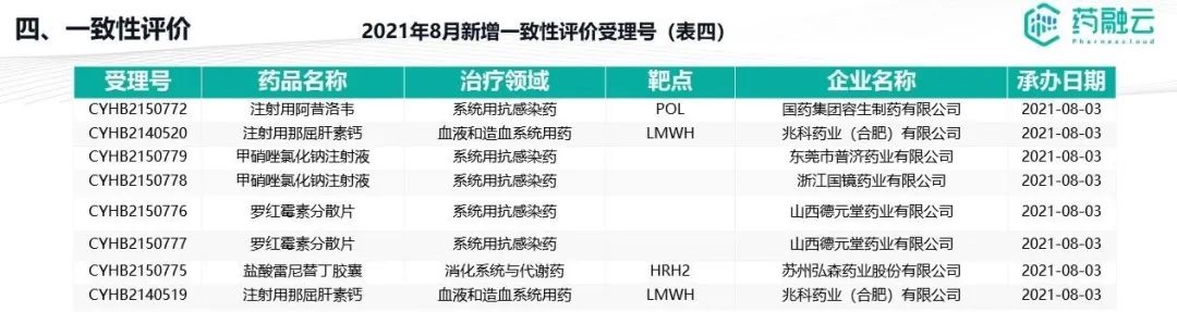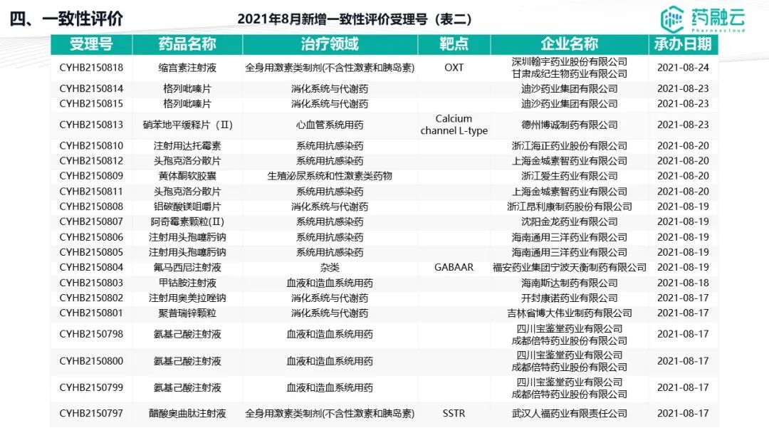 数据统计时间段为2021年8月1日-2021年8月31日,药融云将定期公示药品审评审批信息,关注我们即可定期查看。如有疏漏,欢迎指正!