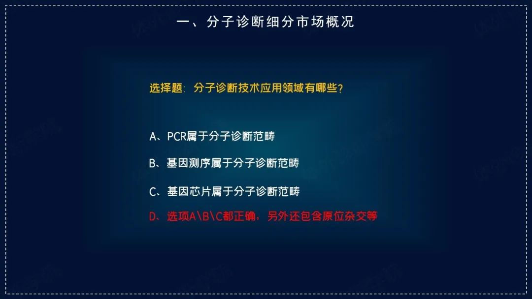 核酸检测普及了从业者对核酸检测领域的认知。然而,很多人对分子诊断了解的还不是很全面,核酸检测只是分子诊断市场的一个细分领域,那分子诊断到底是什么?市场情况如何?未来发展趋势怎么样?