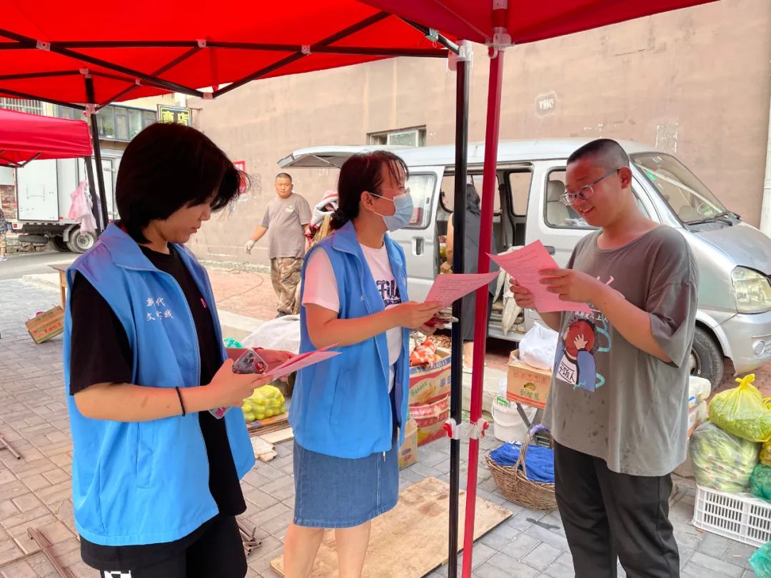 洪智社区、柴峰社区、东河北社区等社区组织志愿者开展垃圾分类知识讲座,在辖区公共场所、商圈、大集等处发放垃圾分类宣传手册、环保袋等倡议居民主动进行垃圾分类;寨南社区组织志愿者开展文明城市创建知识讲座,并发放相关宣传资料,提升居民文明意识;金峰塔社区组织志愿者向辖区居民发放安全知识宣传手册,呼吁居民提高安全意识;古寨社区则通过组织志愿者向辖区居民发放疫苗接种、夏季预防流行病传染等宣传资料,倡议接种疫苗,人人有责。此次志愿活动共发放垃圾分类手册700余册,环保袋60余个,安全知识宣传页400余张,疫苗接种宣传页300余张。
