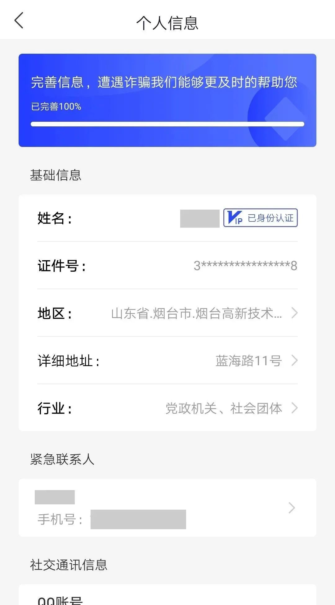 4. 填写全部社交通讯信息,有利于精准预警诈骗信息。