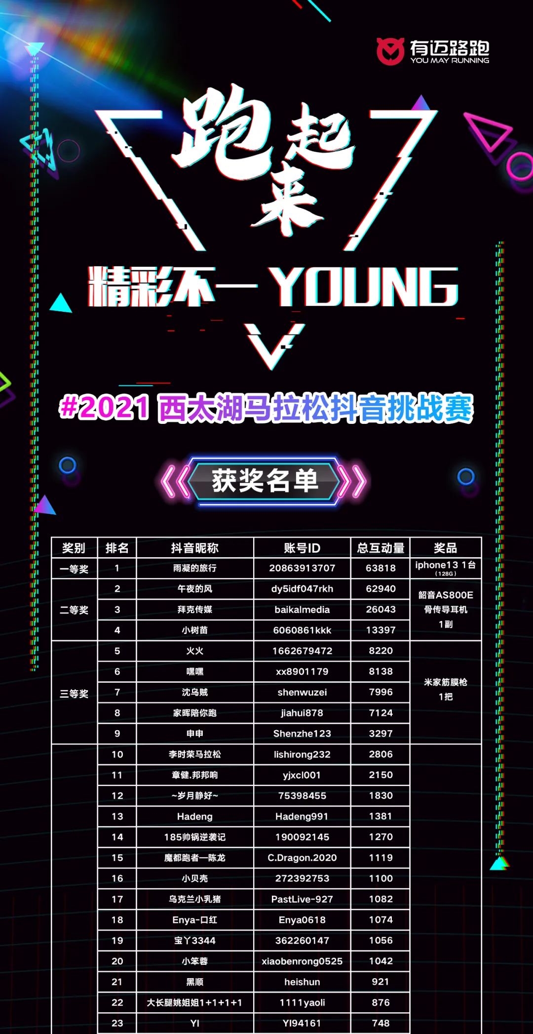 10月20日,作为2021常州西太湖半程马拉松的重要配套活动之一,2021西太湖马拉松抖音挑战赛正式落下帷幕。
