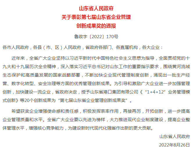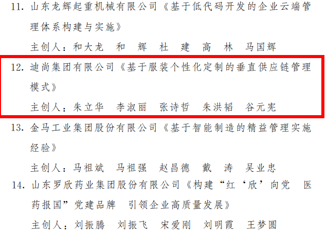 全市唯一!迪尚集团入选第七届山东省企业管理创新成果奖名单