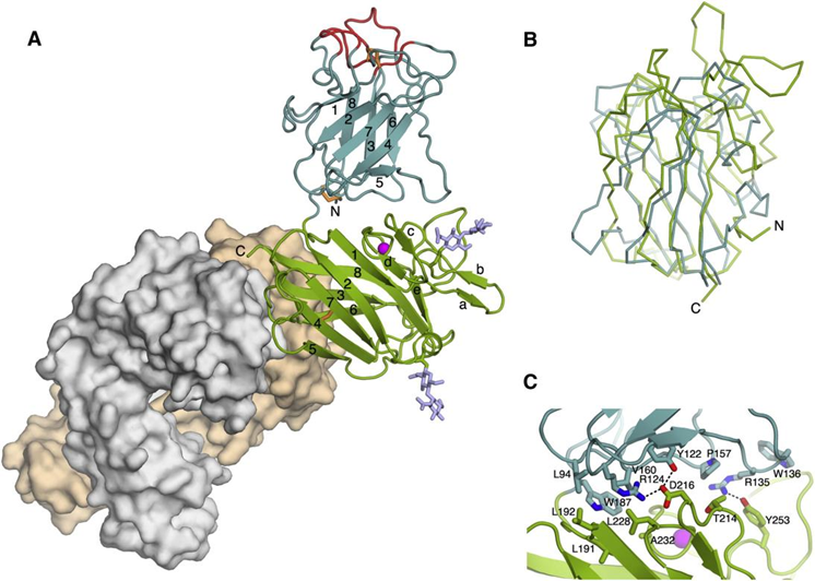 DDR1结构中存在一些主要的结构域,包括位于细胞外区域的N端DS结构域,它与各种胶原蛋白结合,下面是类似球状的盘状结构域(DS-like)。在DS-like下面,是胞外并膜(EJXM)结构域,大约50个氨基酸残基;之后是TM结构域、细胞膜或胞内并膜(IJXM),IJXM大约有171个氨基酸残基;IJXM之后是酪氨酸KD,包含300多个氨基酸残基;DDR1在IJM结构域有7个酪氨酸残基,在KD有8个酪氨酸残基,总共有15个酪氨酸残基;最后是C末端尾巴。