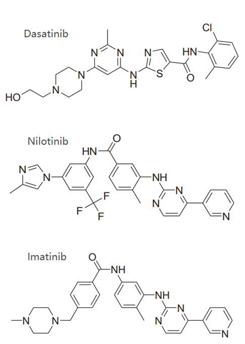 使用各种小分子抑制剂如TKIs作用于KD结构域,目前几乎所有报道过的DDR TKIs都是ATP竞争性抑制剂(I型或II型)。目前FDA已批准的多靶点小分子RTK抑制剂,如 imatinib, nilotinib和dasatinib,也可阻断DDR1的激酶活性。