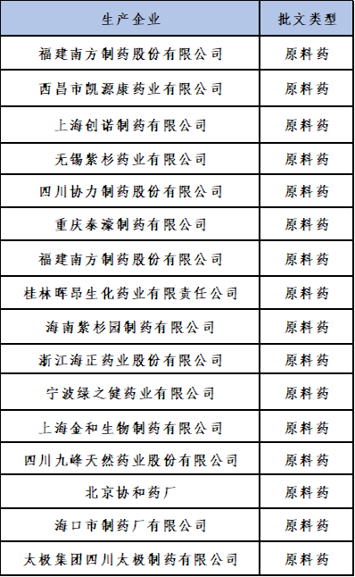 至2021年3月12日,国内共有15家企业获得紫杉醇原料药批文。