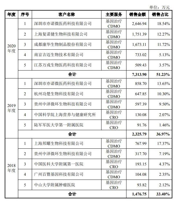 和元生物2018-2020年度前5大客户(图片来源:和元生物招股书)