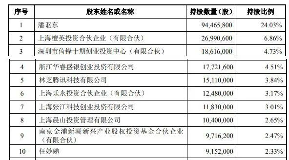 和元生物前10位股东占股比例(图片来源:和元生物招股书)
