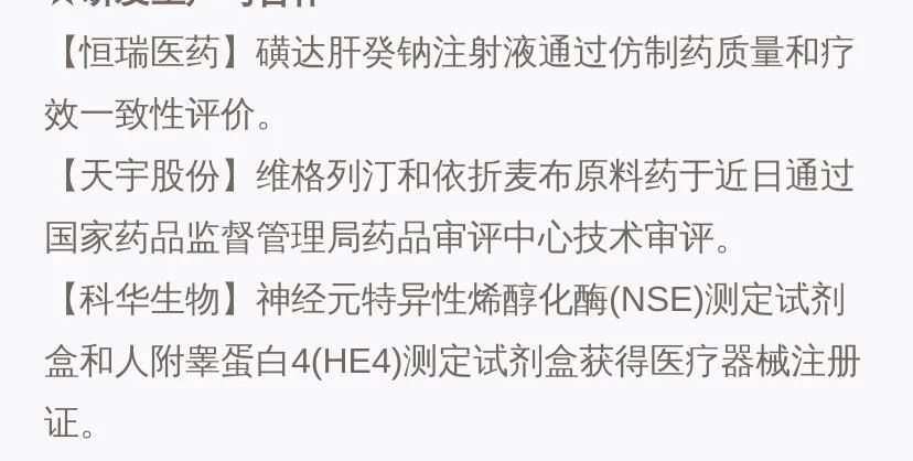 2.恒瑞长效降糖复方制剂获批临床。恒瑞医药1类生物制品HR17031注射液获国家药监局临床试验默示许可,拟用于治疗2型糖尿病。HR17031是恒瑞自主研发的一款长效胰岛素/GLP-1类似物固定比例复方制剂,是该公司中美双报品种,该新药刚刚于7月初在美国获批临床。目前已有2款同类药物被FDA和欧盟批准用于治疗2型糖尿病,分别是诺和诺德的Xultophy 100/3.6和赛诺菲的Soliqua 100/33。