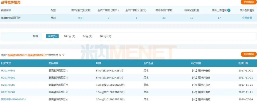 目前,氢溴酸伏硫西汀片还有江苏豪森药业集团、石药集团欧意药业、成都康弘药业等5家以新分类提交上市申请在审评审批中,获批后将视同过评。