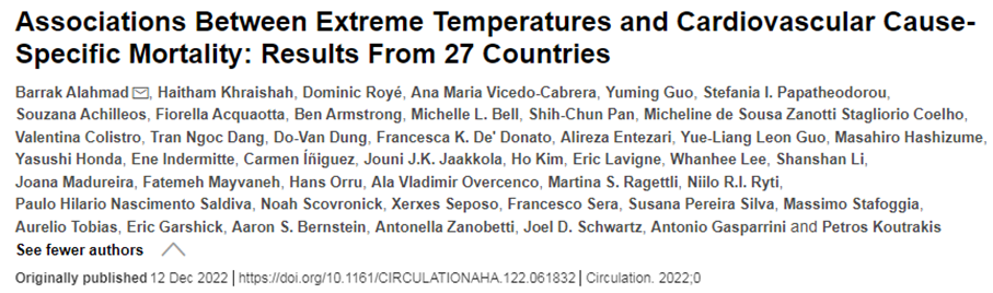 Barrak Alahmad et al. Associations Between Extreme Temperatures and Cardiovascular Cause-Specific Mortality: Results From 27 Countries. Circulation, 2022, doi:10.1161/CIRCULATIONAHA.122.061832.