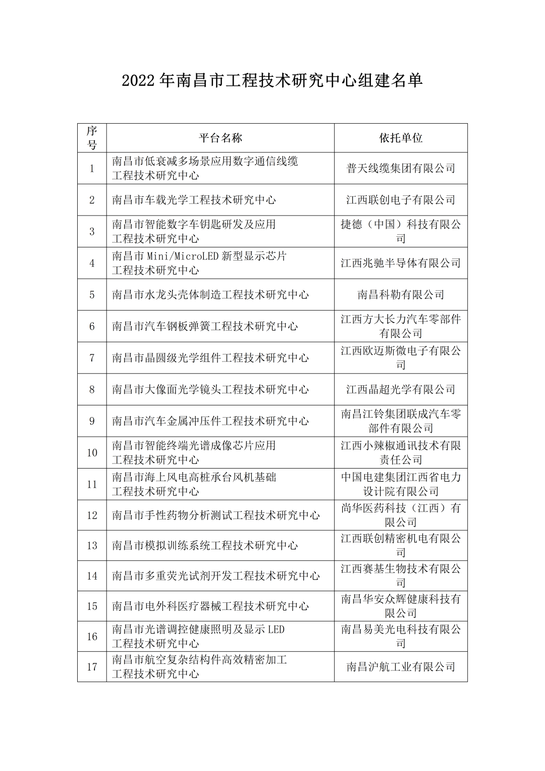 10月10日,南昌市科技局发布了《关于批复2022年南昌市工程技术研究中心、南昌市重点实验室组建名单的通知》,在全市58个市级研发平台中,南昌高新区共有22家单位科研平台获得批复,占全市总数的38%,列全市第一。其中,获得市级工程技术研究中心17个,市级重点实验室5个。此次获批科研平台中,3亿元以上工业企业组建的研发机构有8个。
