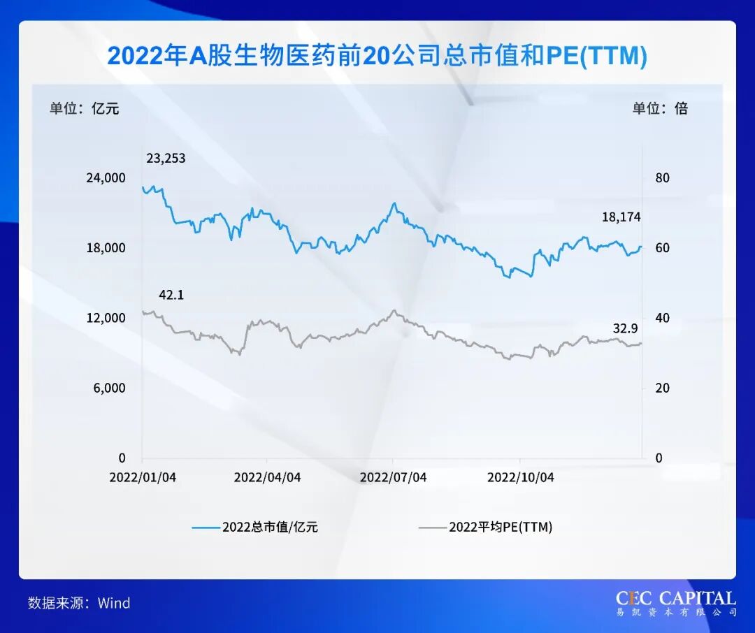 2020疫情爆发第一年,口罩和防护服等医疗耗材需求增长、体外诊断(核酸检测、实验室检测)需求增长,新冠疫苗研发使得CXO需求增长,同时国产新冠疫苗研发预期增强,甚至在新冠疫情被控制住之后消费医疗修复预期增强,由于涉及多个行业或赛道,医药行业因此在2020年整体迎来了一波小牛市。2021年的新冠疫情趋于常态化,这一年是兑现业绩的一年,主要有新冠疫苗生产企业、CXO医疗研发外包企业等,但2021年年中,大约不到一个年度周期,一些医药企业便陆续结束了上涨行情,迎来业绩的兑现,在估值顶后,业绩顶出现,医药行业进入普跌状态,同时特别是由于创新药具有投资周期长,研发风险高,资本回报不确定,叠加疫情爆发之初的资本过度涌入,2022年对于医药行业来说,是较为艰难的一年,一级市场上,投资者更加谨慎,创新药企融资的难度增加;二级市场上,医药生物上市公司市值持续缩水,新股上市破发频现。受新冠疫情影响,部分药企的业务无法展开,业绩受到影响;而一些创新药企开始实施战略收缩:调整研发管线、出售资产、回收现金流。