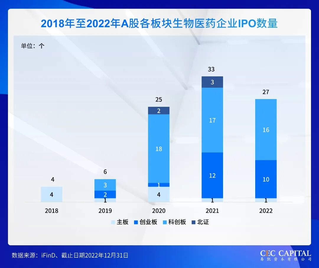 科创板的推出:2018年底,科创板被正式提出,主要服务于符合国家战略、突破关键核心技术、市场认可度高的科技创新企业。重点支持新一代信息技术、高端装备、新材料、新能源、节能环保以及生物医药等高新技术产业和战略性新兴产业,截至2022年底,登录科创板的生物医药企业有87家。