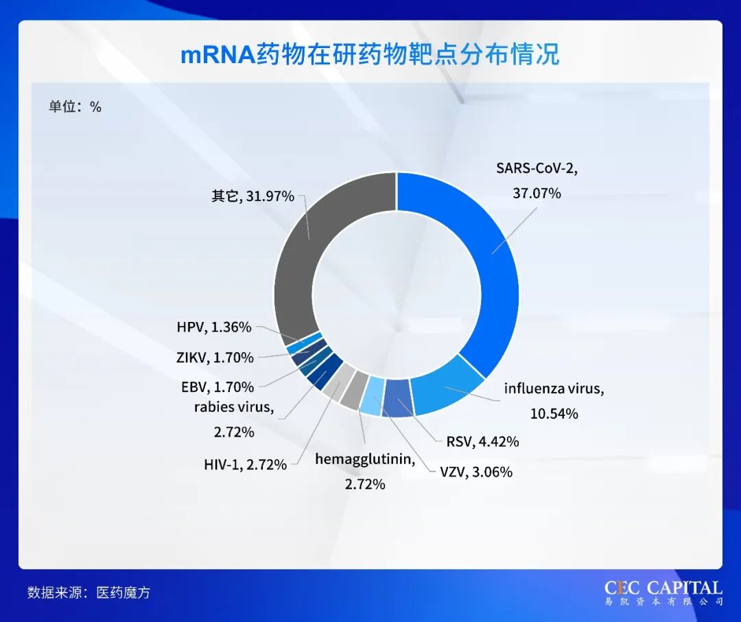 mRNA新冠疫苗在全世界已经接种了数十亿人次,其安全性和有效性得到了广泛验证,也提示了开发疫苗以外的新一代mRNA疗法的潜力。在新冠退潮后的当前,其他适应症的拓展将会是mRNA赛道未来最核心的成长驱动。